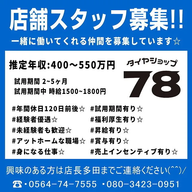 タイヤショップ78がプロの経験と技術でお客様のカーライフを万全にサポートいたします。